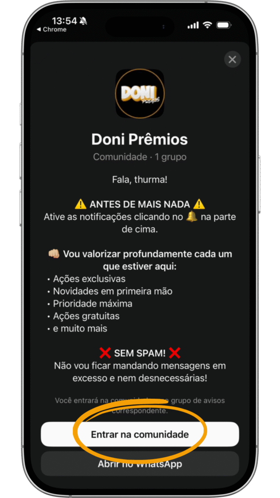 Ao final dessa tela, toque no botão amarelo ‘Entrar no Grupo Vip’